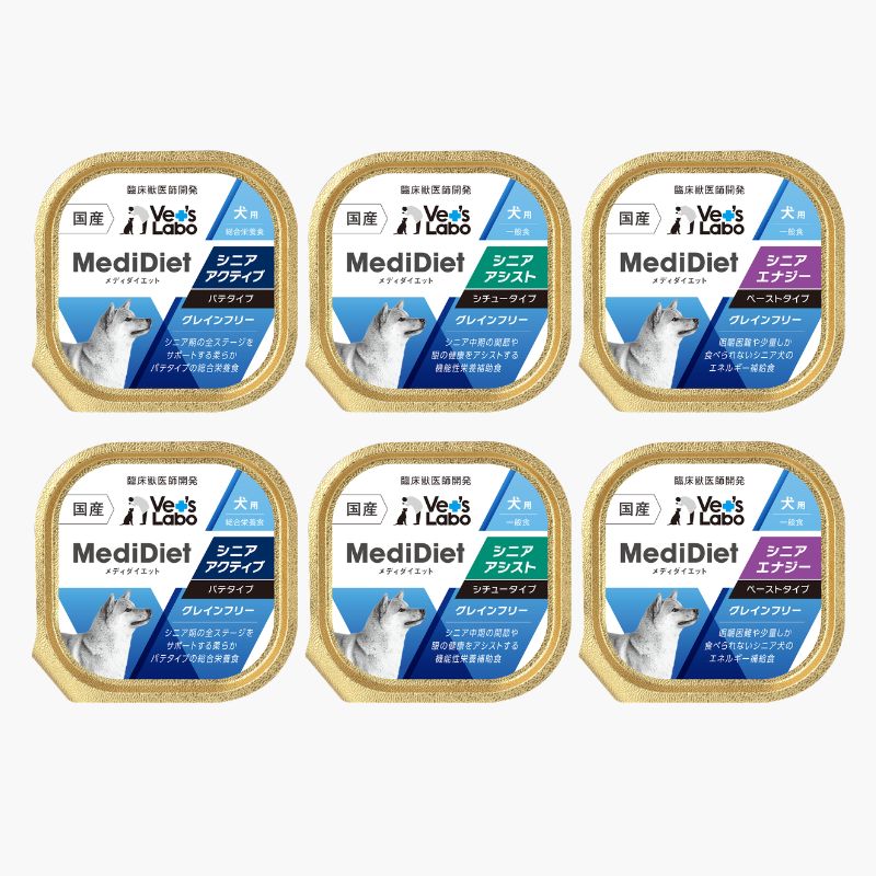 MediDiet メディダイエット シニア 犬用 お試し6個セット メール便配送 送料無料 (アクティブ・アシスト・エナジー各2個入)