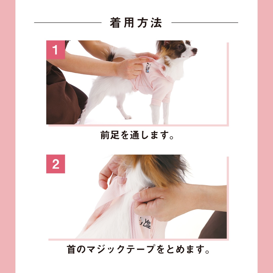 術後の傷口の保護としてや、掻きむしり・傷舐めから皮膚を保護するための日常着として、幅広くご愛用いただけるような素材とデザインにこだわりました。