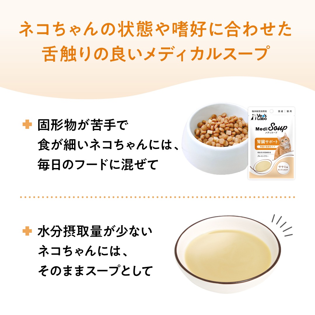 ネコちゃんの状態や嗜好に合わせた舌触りの良いメディカルスープ