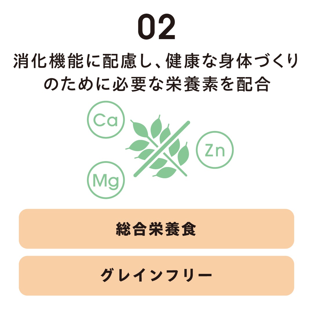 2.消化機能に配慮し、健康な身体づくりのために必要な栄養素を配合