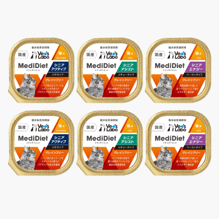 MediDiet メディダイエット シニア 猫用 お試し6個セット メール便配送 送料無料 (アクティブ・アシスト・エナジー各2個入)