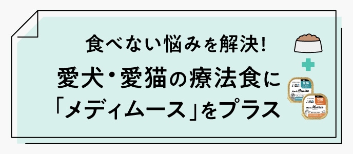 「せっかく用意した療法食を全く食べてくれない」…そんなお悩み解決の選択肢に機能性栄養補助食「メディムース」をご紹介します。